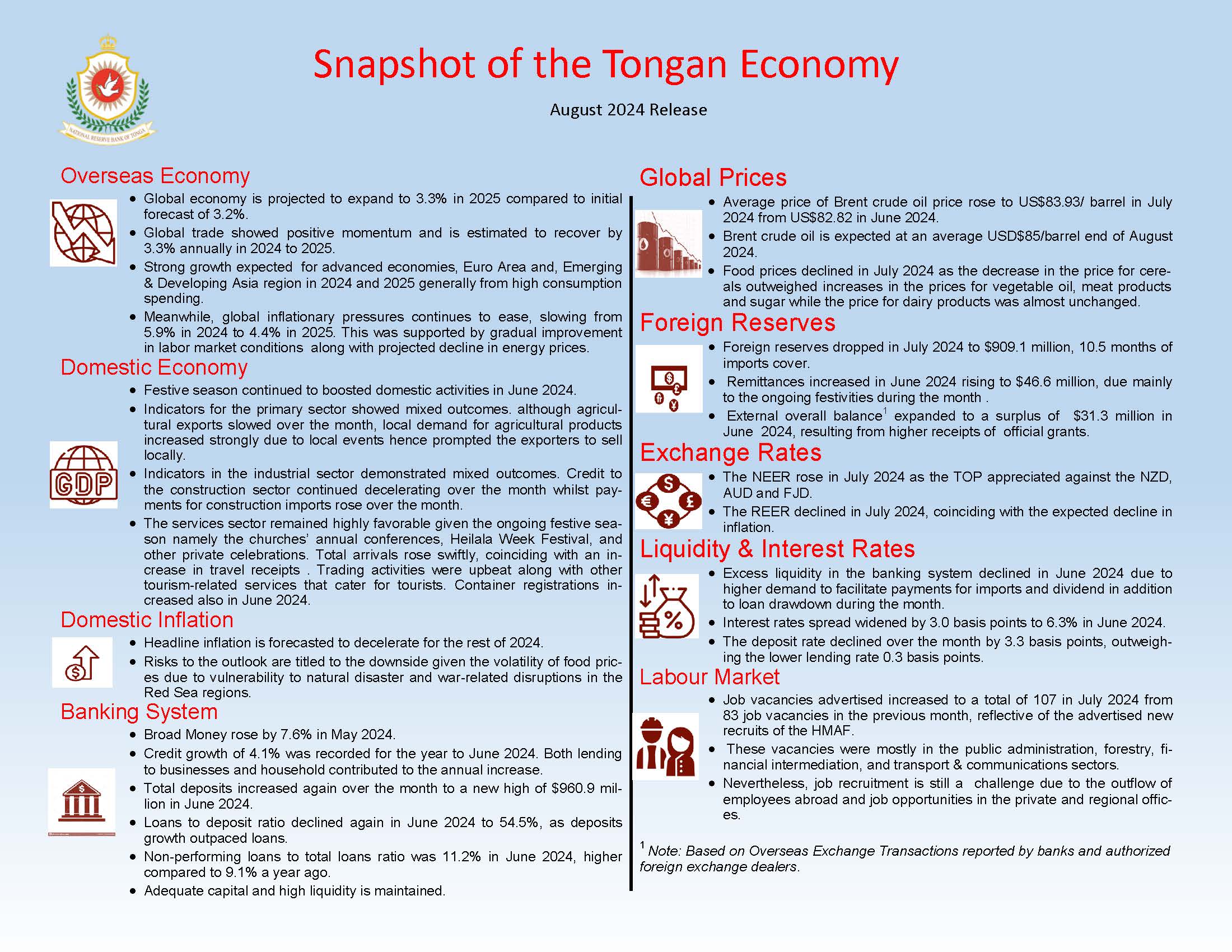 Moreover, growth for Emerging & Developing Asia region (Tonga included) remains strong with a 5.4% increase in 2024 and 5.1% in 2025. This is driven by higher export activities specifically in the technology sector combined with higher private consumption . Thus, emerging market economies in Asia remains the driving force for the global economy, with growth in China and India accounting for almost half of the global growth.