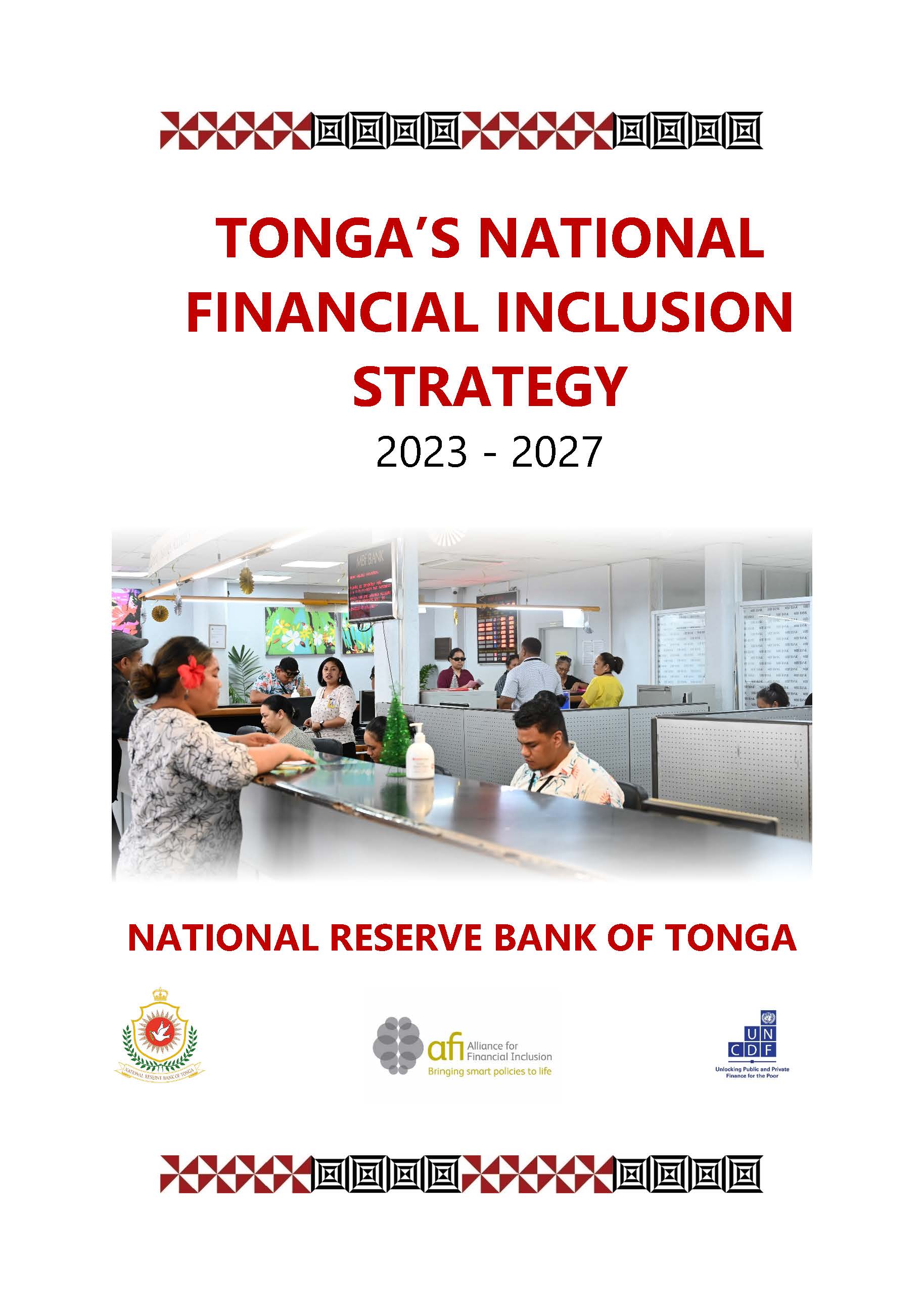 The National Financial Inclusion Strategic (NFIS) 2023 - 2027 is Tonga's roadmap for achieving financial inclusion, promoting social equity and fostering economic growth. The key focus is bridging financial gaps and making financial services more accessible and affordable, particularly in remote areas.