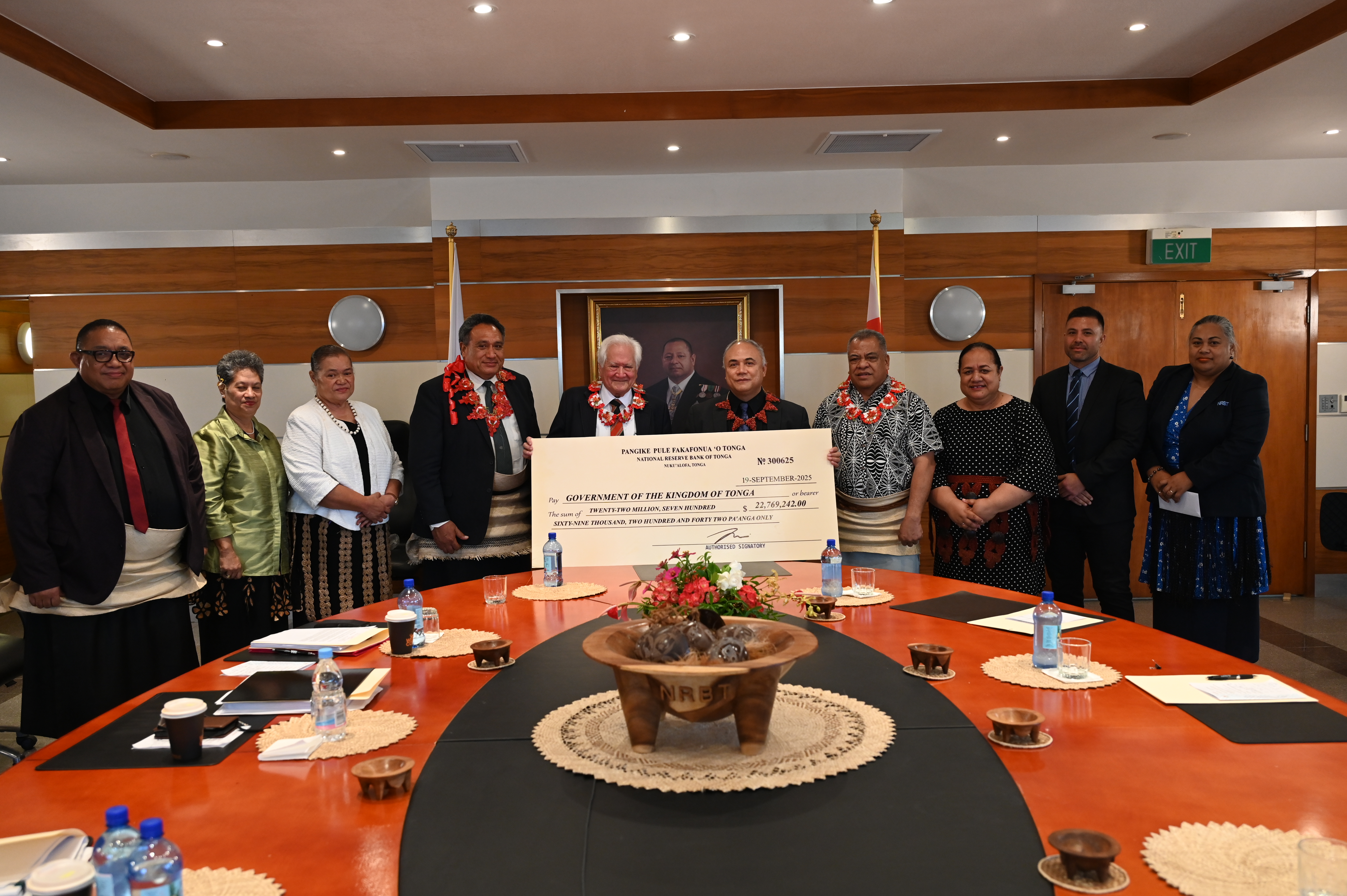 A cheque of $22.8 million was presented to the Prime Minister Hon. Eke, as the Bank’s distribution for the financial year 2025. Special acknowledgements of the Government of Tonga, international organisations, licensed financial institutions, and all the stakeholders’ support and valuable contributions throughout the year were noted. The Board Chairman Lord Sevele commends the dedication of the Directors of the Board, the Governor, and the NRBT staff in ensuring the strong results in 2025.